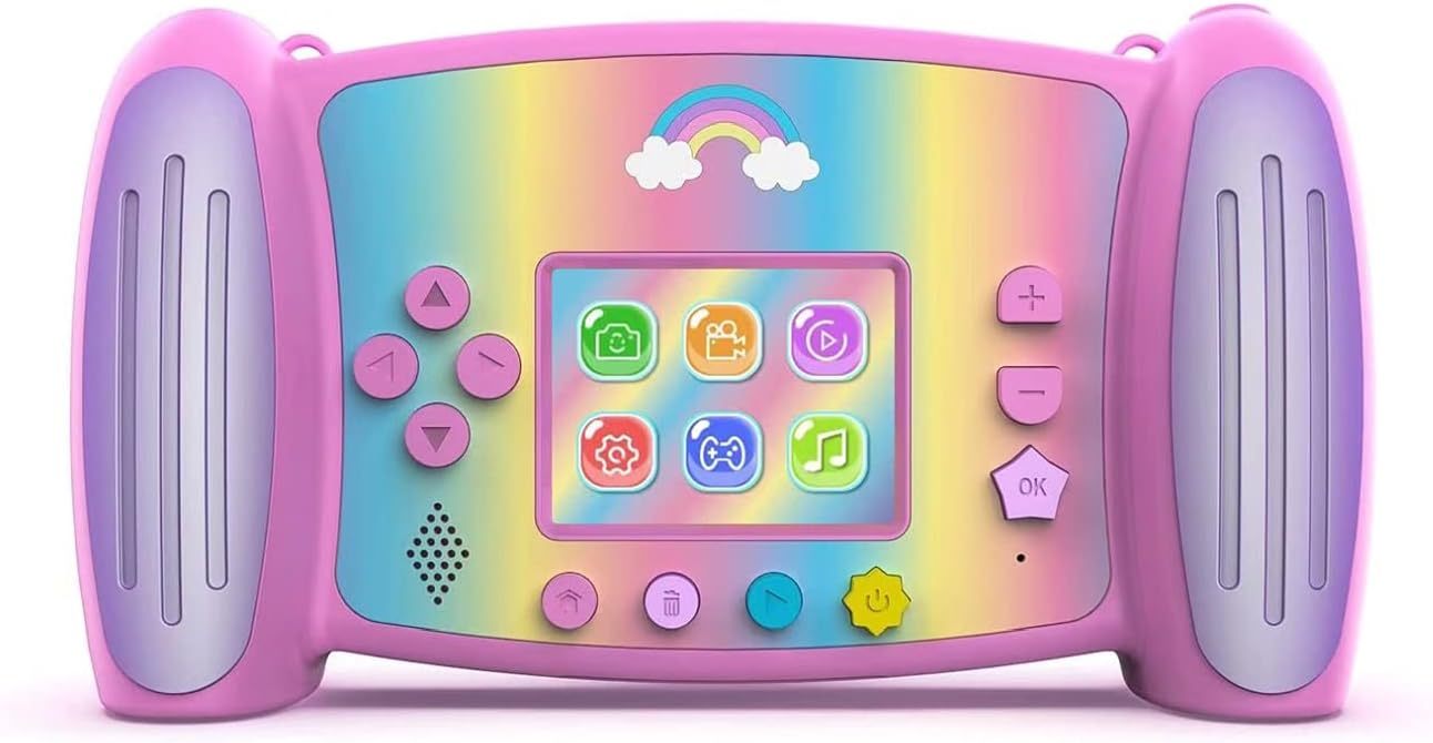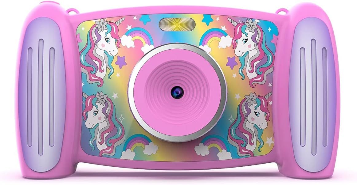 Interaktyvus Unicorn Play fotoaparatas berniukams ir mergaitėms su daugybe funkcijų ir žaidimų, atsparus vandens purslams.