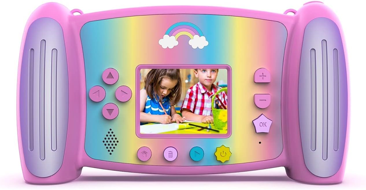 Puikus pirmasis fotoaparatas vaikui: patrauklus, vaikams pritaikytas dizainas su 2-in-1 ekranu, 5 MP kamera, 4x skaitmeniniu priartinimu ir 1080p vaizdo įrašymo raiška. Micro SD kortelė jau pridėta komplekte.